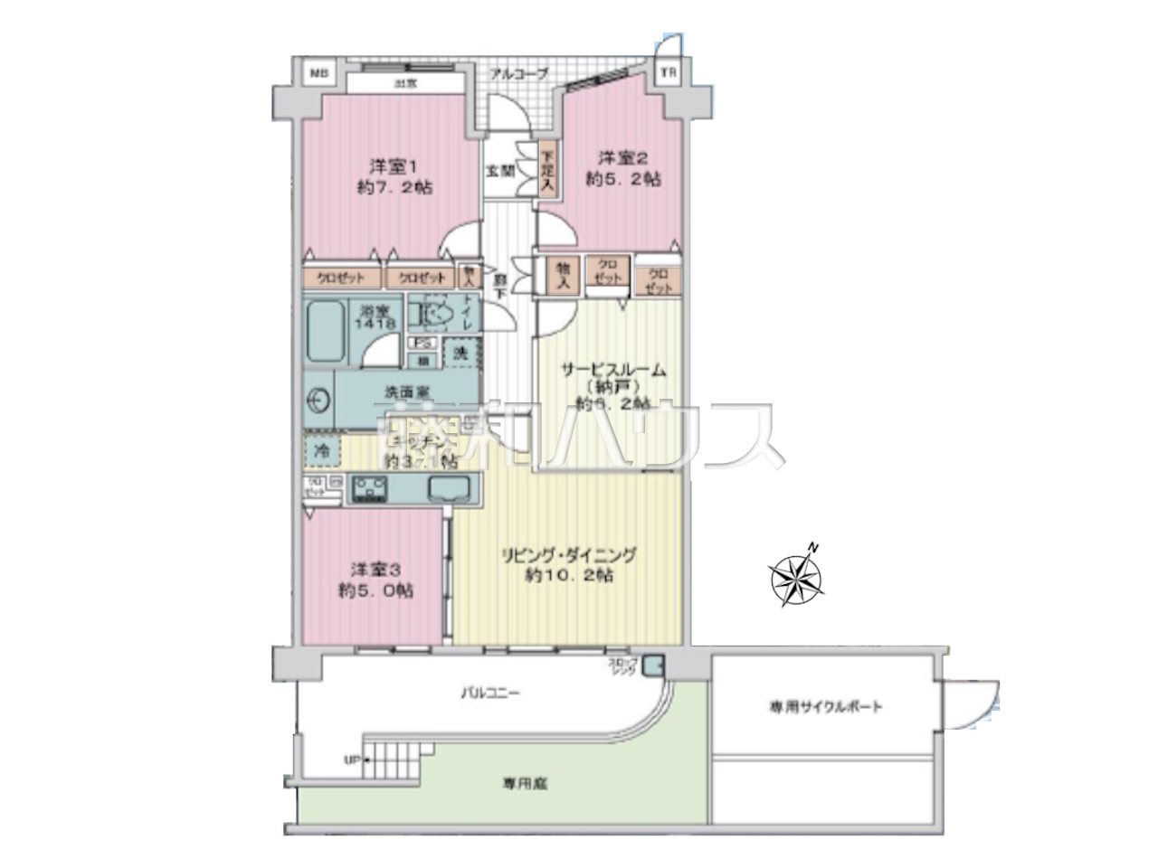 | 専用庭 | 20.56m² 使用料:500円/月 | 総戸数 | 56戸 |