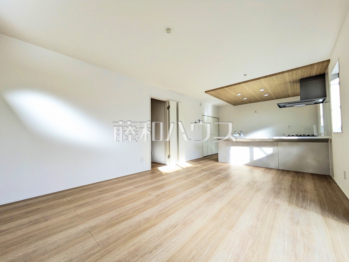 ≪1号棟 外観≫大きなソファーを置いても圧迫感がない約16帖の広々LDKプラン【府中市多磨町2丁目】