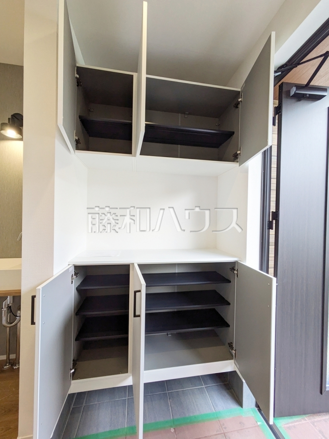各部屋収納に加え、階段下などに多数収納があるため整理整頓に役立ちます。玄関収納 【東村山市廻田町3丁目】