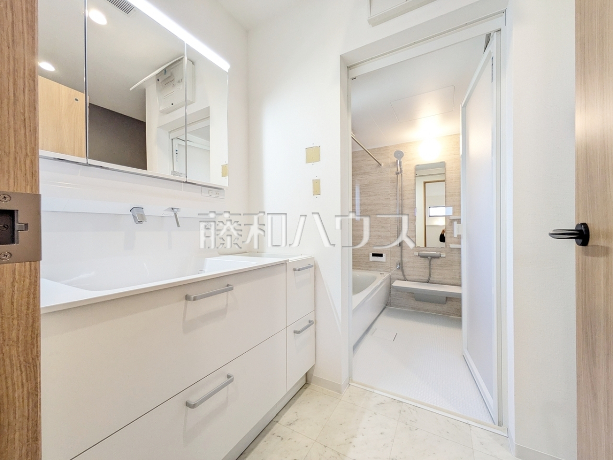 落ち着いた色合いで疲れたからだを癒す、贅沢なくつろぎ空間です。洗面室 【東村山市廻田町3丁目】