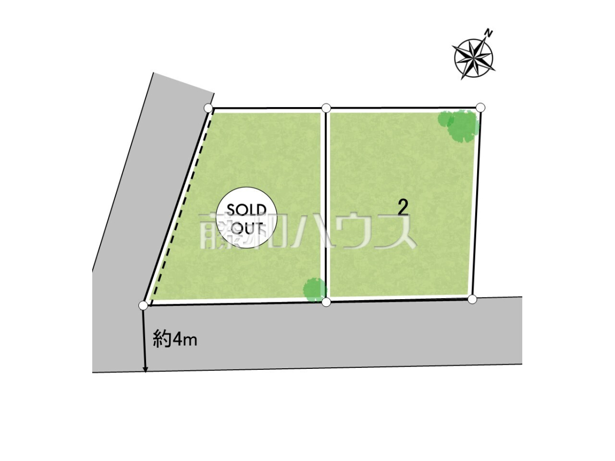 - 土地(建築条件なし)の「建物プラン例」等を掲載している時、その設計プランは特定の建築請負会社によるもので、当該建築請負会社以外で建築した場合、同様のものが同価格で建築出来るとは限りません。また建築請負会社を特定するものではありません。
