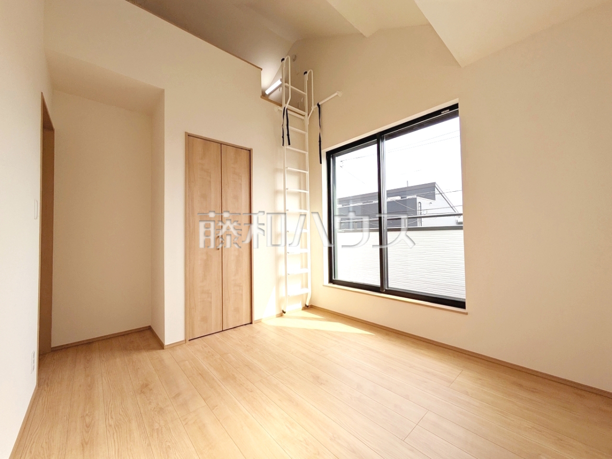 - 南側が開けているため、お日様の日差しもサンサンと降り注ぎます。さまざまな用途に利用できるロフトつき♪各居室にはクローゼットを完備し、家具を置くスペースが確保しやすい設計がされております。