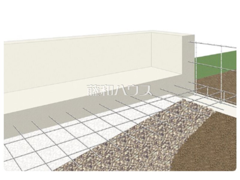 「鉄筋入りコンクリートベタ基礎」を標準採用。地面全体を基礎で覆うため、建物の加重を分散して地面に伝えることができ、不動沈下に対する耐久性や耐震性を向上することができます。
