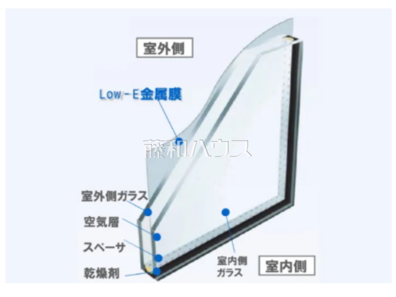 居室部分の窓ガラスには2枚のガラスの間に空気層を設けたLow-E複層ガラスを採用。高い断熱性と共にガラス面の結露対策としても有効です。