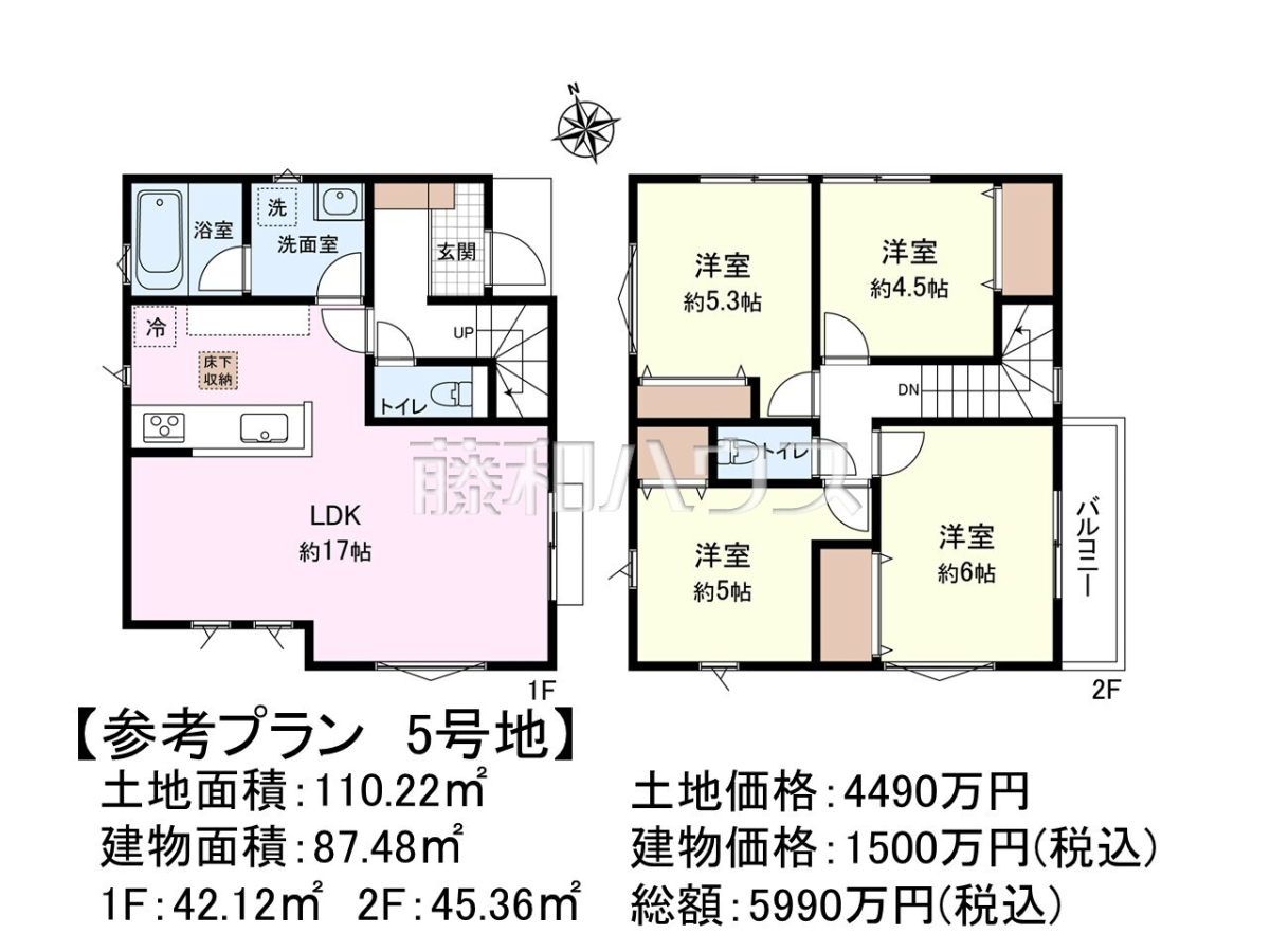 ![5号地 建物プラン例(間取図) 【調布市深大寺北町5丁目】