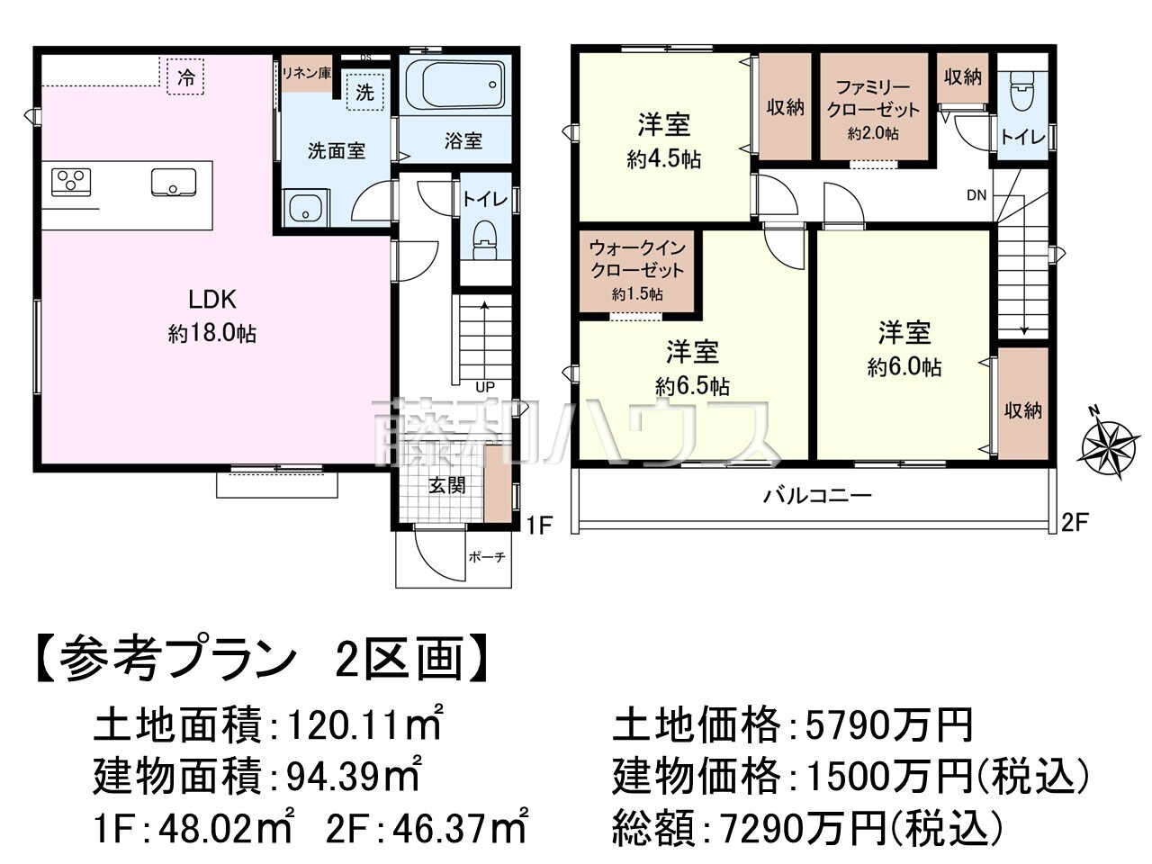 ![≪2号地 建物プラン例(間取図)≫ 物件の事、諸費用の事など、小さな疑問もお気軽にご連絡・ご相談下さい。 【府中市分梅町3丁目】