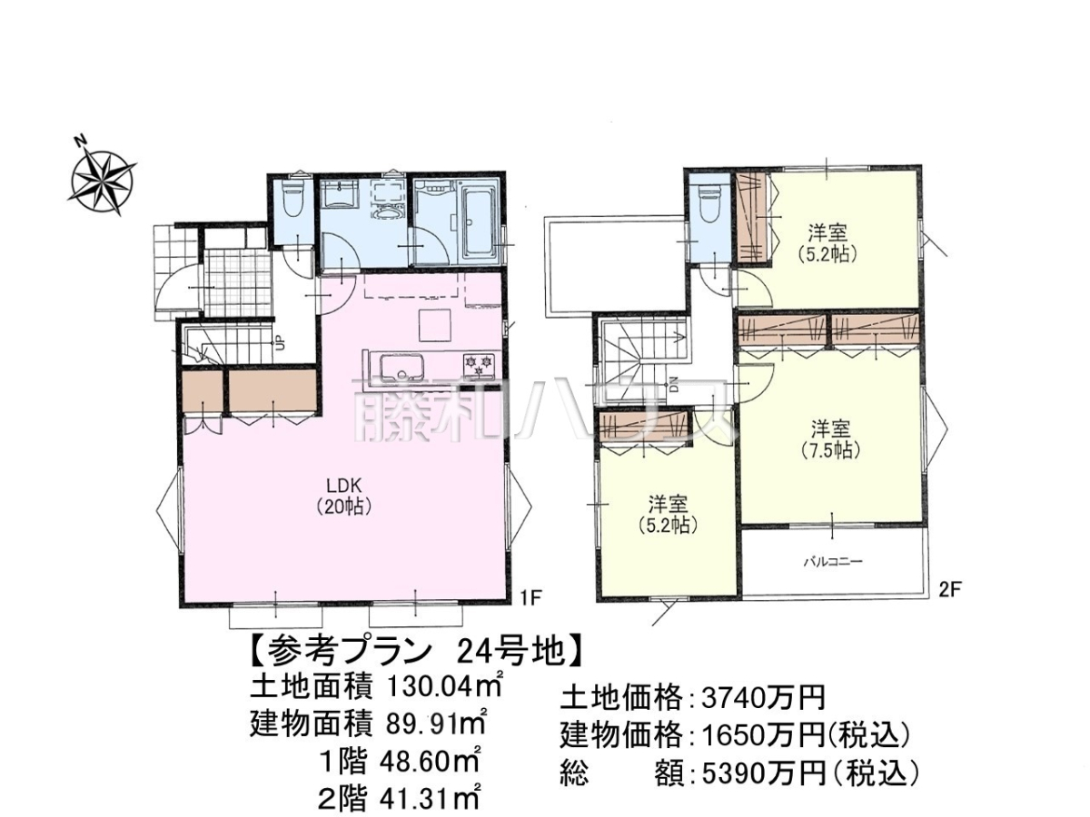 ![24号地 建物プラン例(間取図) 【日野市大字日野】