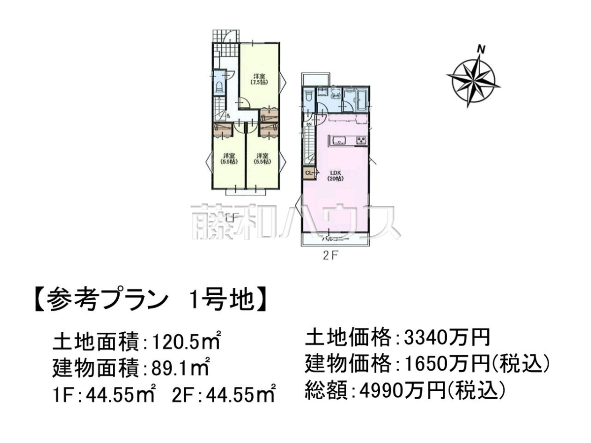 ![2号地 建物プラン例(間取図) 【日野市大字日野】参考プランをご用意いたしました!是非お役立て下さい!
