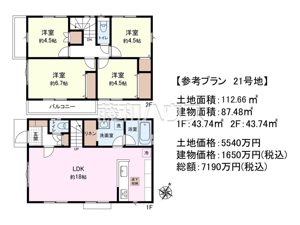 ![21号地 建物プラン例(間取図) 【三鷹市牟礼5丁目】
