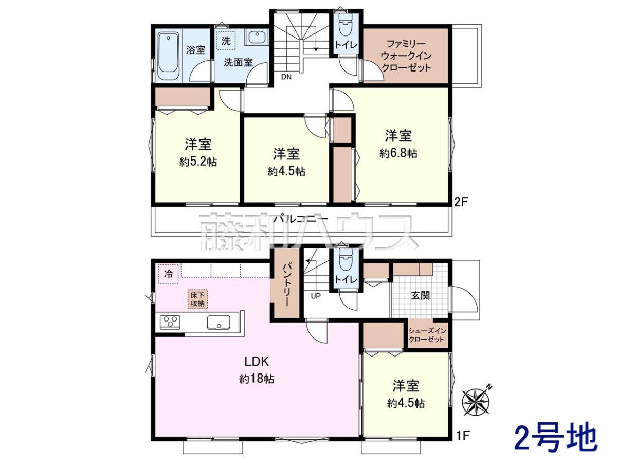 ![2号地 建物プラン例(間取図) 【三鷹市牟礼5丁目】