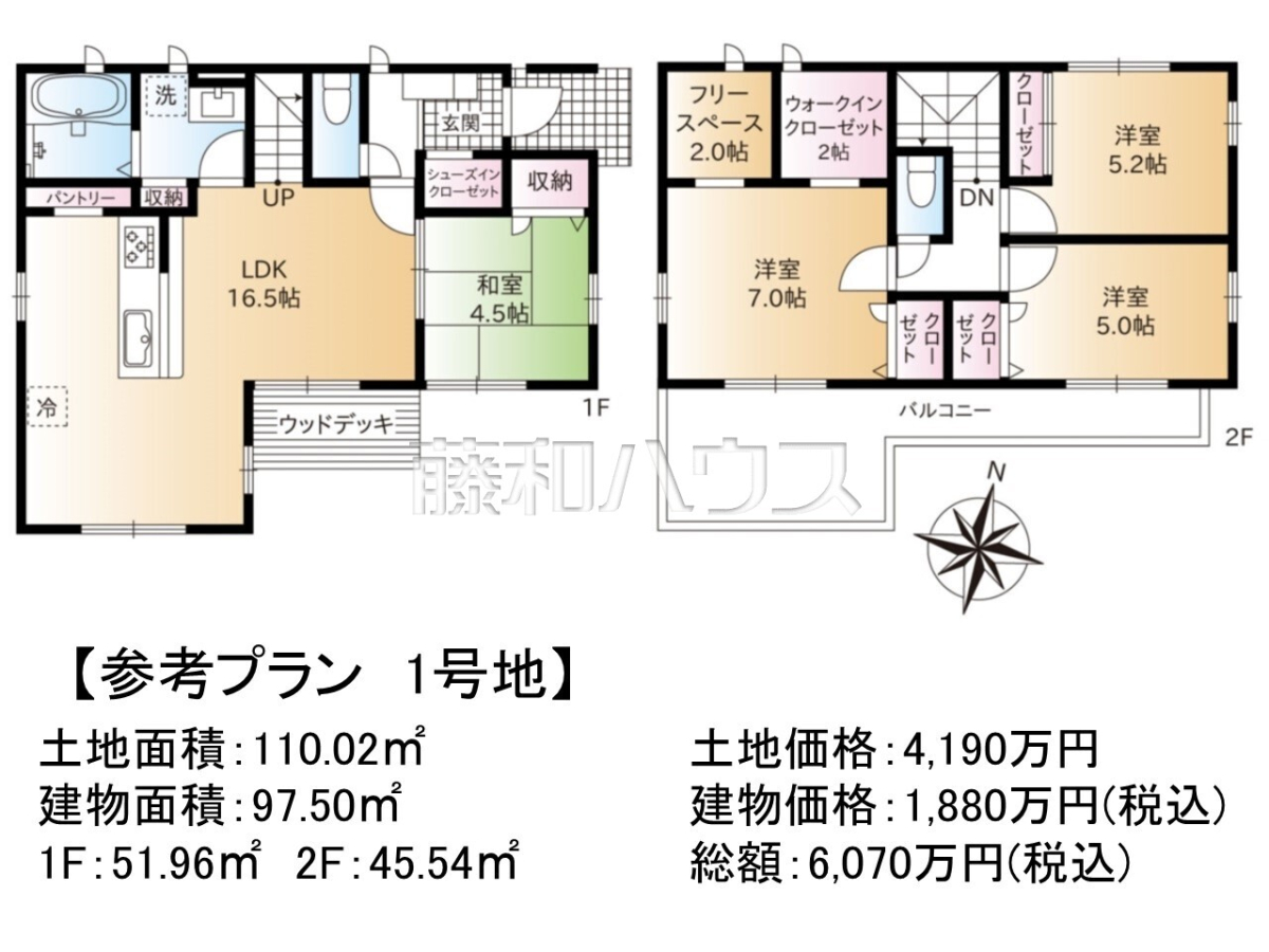 ![1号地 建物プラン例(間取図) 【練馬区西大泉4丁目】